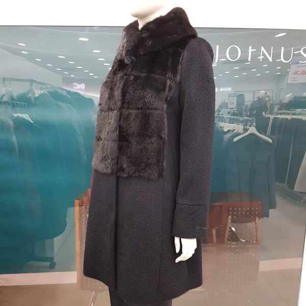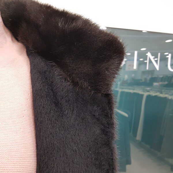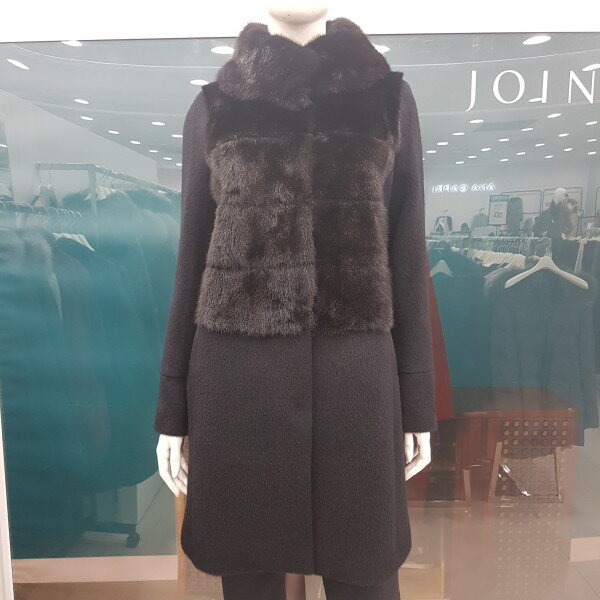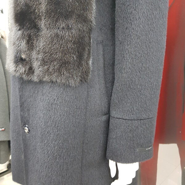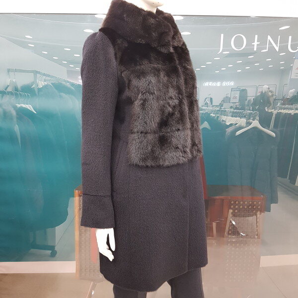 수리 알파카가68%함유된 코트로 넥라인부터 앞가슴 밑부분까지 밍크로 되어 있어 따뜻하면서도 고급스런 코트입니다