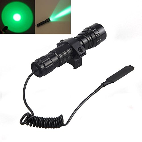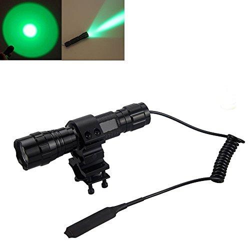 BESTSUN Tactical Flashlight CREE Green LED Light Coyote Hog Fox Predator Varmint Hunting Lamp Torch Set With Pressure Switch and Rail Rifle Mount for Picatinny AR (18650 Battery and Charger included)