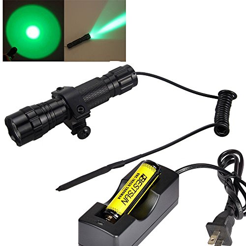 - Complete hunting kits: 1x Green hunting light flashlight,1 x 18650 3.7V rechargeable battery , 1 x battery charger, 1x pressure switch, 1x mount