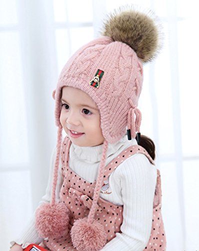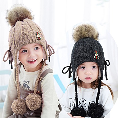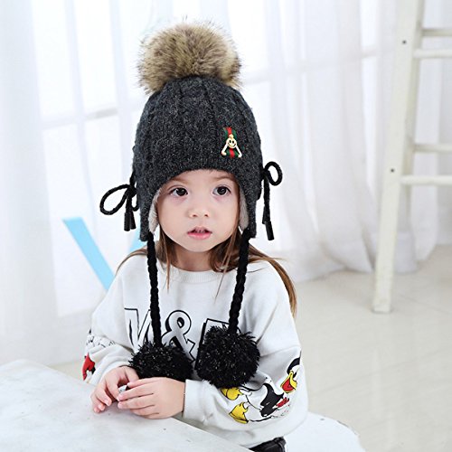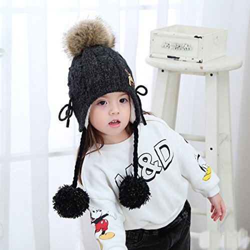 (Fighting to Achieve)/Accessories/Cold Weather Accessories/DIRECT FROM USA/Fighting to Achieve Boys Girls Drawstring Helmet Hat Knitted Earcuff Hat Pompom Flap Cap
