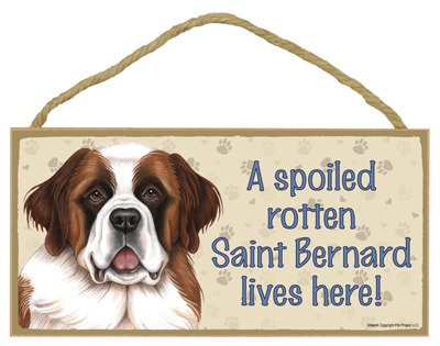 (SJT61960) A spoiled rotten Saint Bernard lives here wood sign plaque 5" x 10"