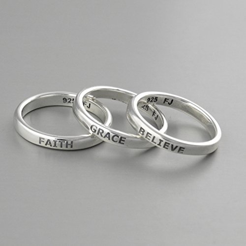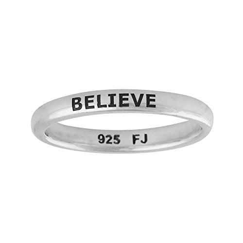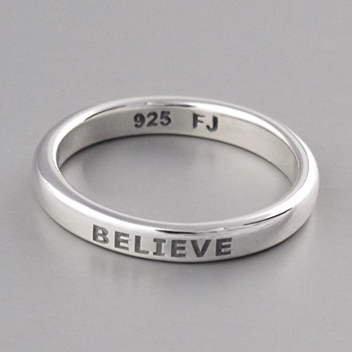-. Binding : Jewelry -. Brand : FashionJunkie4Life -. Department : womens -. Feature : Made of solid, genuine 925 sterling silver (stamped 925) / Available in sizes 6-10 / Ring arrives in a gift box / Band measures 3.5mm wide / Visit the FashionJunkie4Life storefront to view a variety of jewelry -. Label : FashionJunkie4Life -. Manufacturer : FashionJunkie4Life -. Model : na -. MPN : na -. PartNumber : na -. ProductGroup : Jewelry -. ProductTypeName : FASHIONRING -. Publisher : FashionJunkie4Life -. Studio : FashionJunkie4Life -. Title : Sterling Silver BELIEVE Engraved Stackable Ring, Sizes 6-10