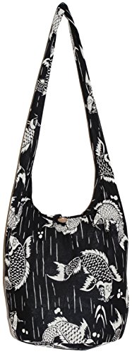 Black Coy Fish Bohemian Sling Bag Crossbody Shoulder Purse Hippie Hobo Gypsy