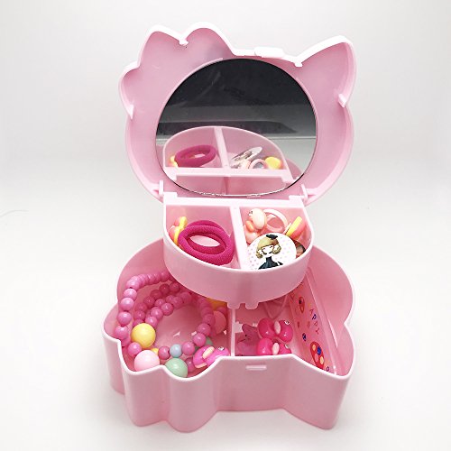 Double layers jewelry box with beauty accessories (Pink)