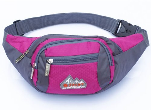 Big Mango New Fashion Womens Sports Bag 4 Zipper Pockets Waist Bag Fanny Chest Pack with Cell Phone Pouch & Automatic Umbrella & Small Personal Stuffs for Both Men and Women Use - Plum