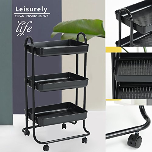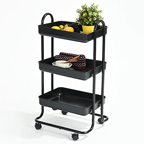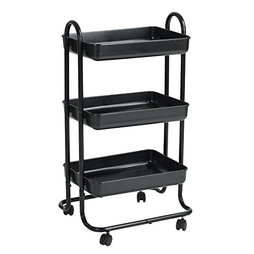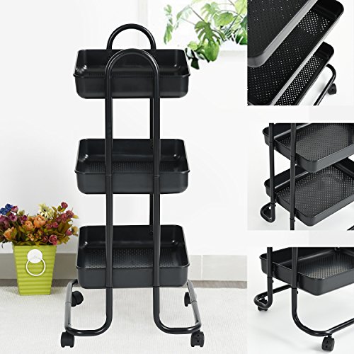 Rolling Cart Bathroom Utility Trolley Wohomo 3 Tier Tray with Handles and Locking Caster Wheels Small Beauty Salon Tool Cart Kitchen Classroom Office Bathroom( Black)