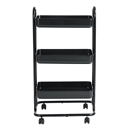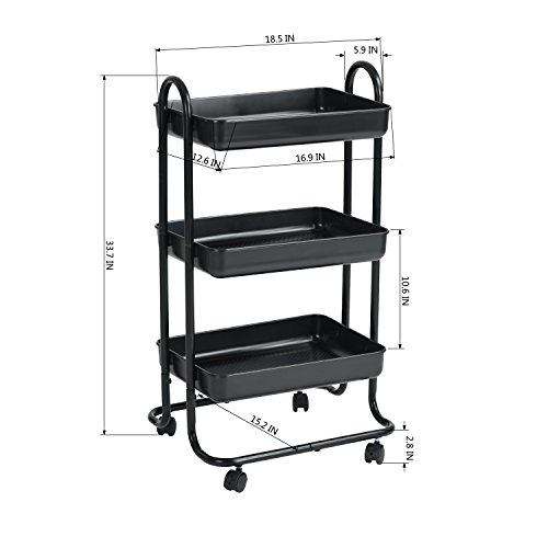 - Rolling Trolley Cart - ERGONOMIC DESIGN – High quality plastic and metal frame tube with anti-rust powder coating finish for a long lifespan and easy cleaning. The bins are designed with enclosed hole on the bottom, that retain items in place and reduce dust build-up. Product dimensions: L18*W14.8*H33.8in.
