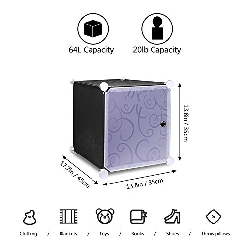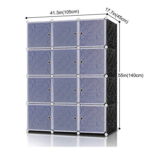 LARGE SPACE STORAGE ABILITY - 12 Rectangular blocks and each cube can hold up to 20 lbs, It can hold clothes, books, kids toys, beddings and so on.Dust-proof PP plastic Doors with metal ring design for easily opening and closing.