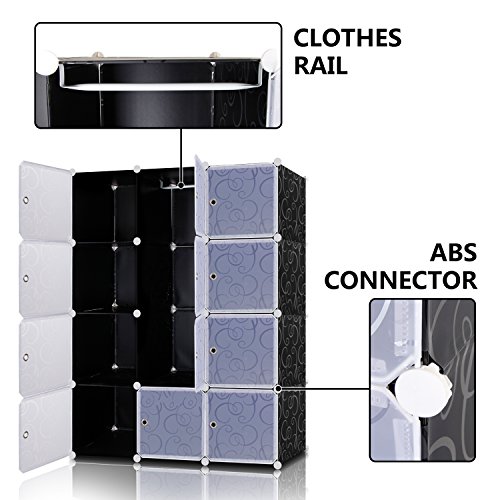 Lifewit 4-Tier Clothes Closet DIY Portable Wardrobe Freestanding Large Space Storage Organizer Black with White Doors