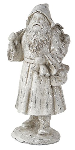 Resin White Glitter Santa Claus with Bag - Size 6.75 Inches