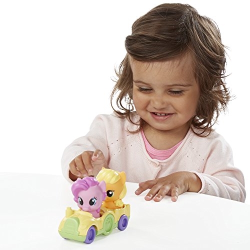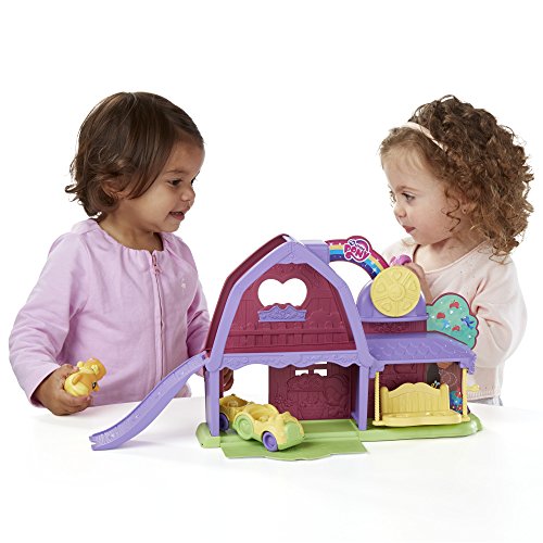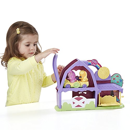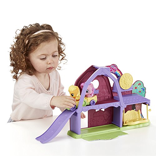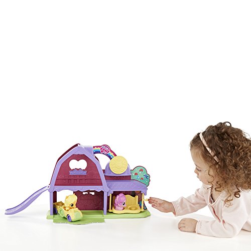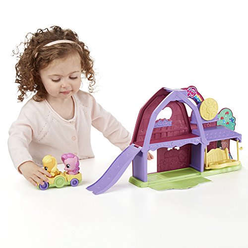 Sweet adventures are just around the corner with Applejack and Pinkie Pie! Now toddlers and preschoolers can explore and play pretend with this adorable playset designed for their little hands. What will your little one and the ponies try first? Bring them for a ride around the barn on the tractor, which has space for both ponies. For even more rollin' fun, flip down the roof ramp and send the ponies rolling down! The swing can also hold both ponies after they go for a ride. Kids can also turn the spinner to hear clicking noises. For even more adorable pony fun, this set works with other Playskool Friends My Little Pony figures and vehicles! Sold separately. Subject to availability.Feature