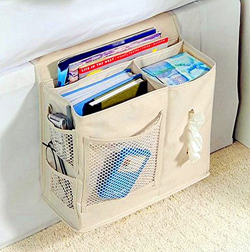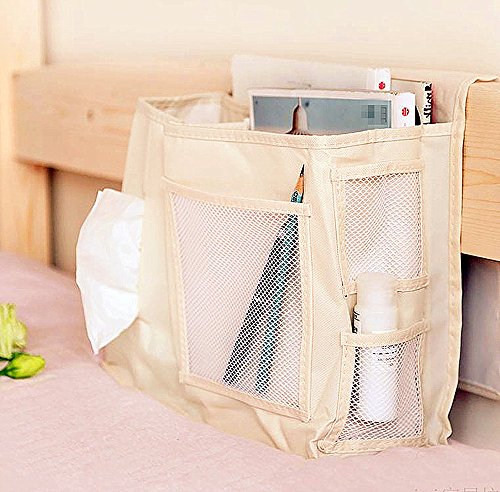 leoyoubei13x10 Inch Bedside Sofa Caddy Storage Bag Accessory TV Remote Book Organizer Large capacity 6 pockets for quick viewing and storage and Kleenex pocket oxford cloth(Beige)