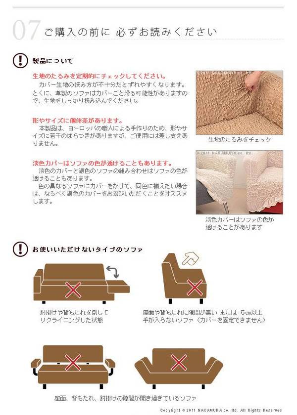本商品はお取り寄せ商品のため、稀にご注文入れ違い等により欠品・遅延となる場合がございます。誠に恐れ入りますが、何卒ご了承ください。 また、以下の場合には追加送料がかかる場合がございます。  ・大型商品の複数購入時 ・同梱区分が異なる商品の複数購入時  【出荷目安】:3 - 6営業日 ※土日・祝除く 【同梱区分】:TS 1832 【梱包サイズ】:大型商品 【代引き決済】:不可  配送伝票の依頼主は出荷元(メーカーもしくは仕入元)名となる場合がございますので、お受け取りの際はご注意ください。   【型番】61000003  イタリア製ストレッチフィットソファカバー Firenze〔フィレンツェ〕アームなし 3人掛け用 ソファーカバー ストレッチ 3人掛け アイボリー   ≪アームなし・3人掛け用です≫ 商品について:どんな形にも合わせやすい!かぶせたら余った部分をソファのすき間に押し込むだけ♪タテヨコ伸縮自在のストレッチ素材。のびがよく柔らかで凹凸のある素材感が特徴。生地は上質なイタリア製。洗濯OK! 適合ソファサイズ:幅135~190cm・高さ85cmまで カラー:アイボリー・ブラウン・グリーン・イエロー・チョコレートブラウン・ワイン・ブルー・オレンジ 材質:綿55%・ポリエステル25%・アクリル15%・レーヨン5%(61000003)  【特記事項】 画像のカラー・サイズとは異なる場合がございます。商品名のカラー・サイズをご確認下さい。  【ご注意事項】 本商品は、北海道・沖縄・離島への配送はいたしかねます。あらかじめご了承ください。
