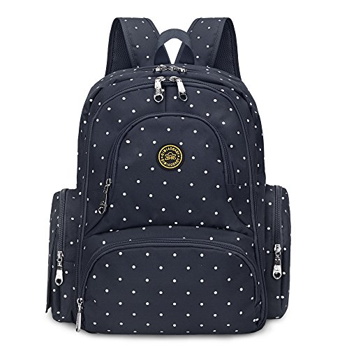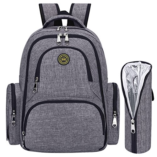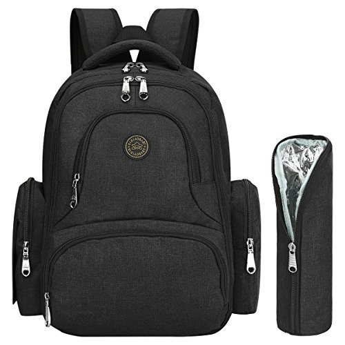 Large Capacity with 16 Pockets: Interior with 4 insulated bottle holders, 2 super Waterproof PEVA Pockets for wet items, one special pocket for pacifier, laptop sleeve for a 14'' laptop.
