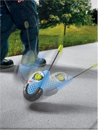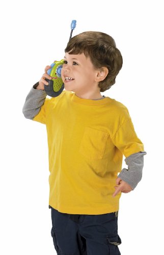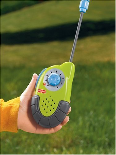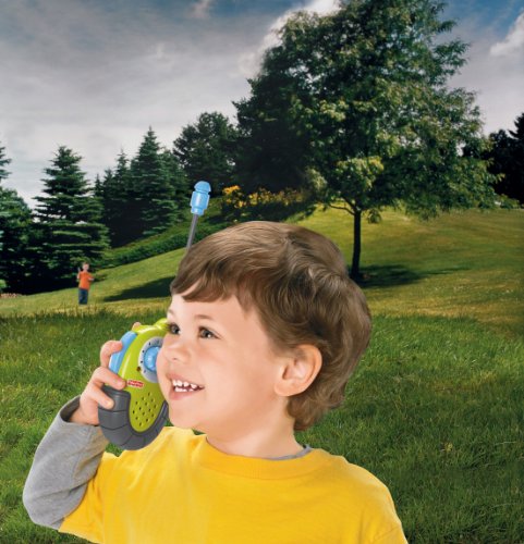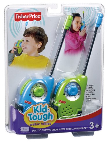 Fisher Price Kid-Tough Walkie Talkies Fisher Price Kid-Tough Walkie Talkies are the first preschool appropriate walkie talkies that are tough enough and easy enough to stand up to typical, rough preschooler use. The set of two walkie talkies allows kids to communicate with each other from a distance of 200 feet. It features a kid-tough hand grip, push to talk/release to listen detail, a volume dial, a flexible safety antenna, and a power on/off switch.