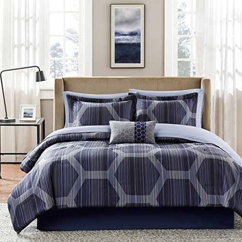 Madison Park Essentials Rincon 7 Piece Complete Bed Set, Blue, Twin