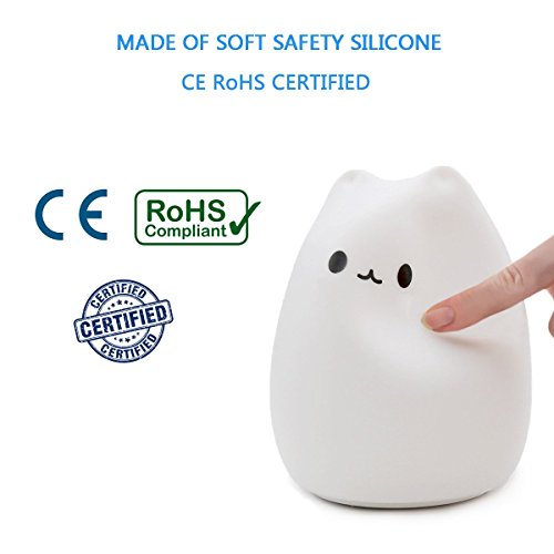 - SAFETY FIRST: We know how important the security is, especially as a gift to children, NeoJoy cat night light is made of soft BPA-Free wahsable silicone, RoHS CE approved, have no sharp parts, don’t get hot and can be put into bed