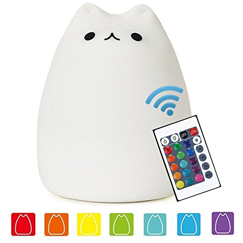 Cat Lamp, NeoJoy Remote Control Silicone Kitty Night Light for Kids Toddler Baby Girls Rechargeable Cute Kawaii Nightlight