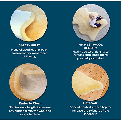 - ❤ WHY NATURAL LAMBSKIN? – Lambskin wool is nature’s most resilient and comforting resource. Its soft and hollow fibers “breathe” and help regulate body’s temperature. Air flows freely between your baby and our lambskin, providing the utmost in comfort. Our lambskin rug can absorb up to 30% of their own weight in moisture without feeling wet, keeping your baby dry and comfortable, regardless of the weather.
