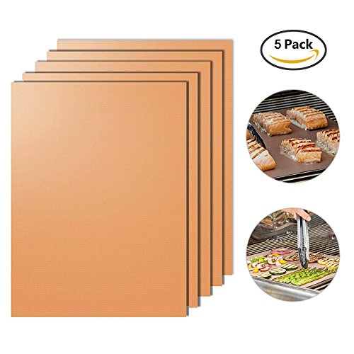 Uarter Copper Grill Mat Copper Chef Grill and Bake Mats Non-stick BBQ Grill Mats, 5Pcs