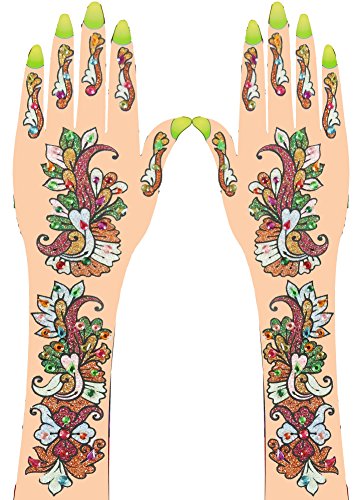 Kajiree - Authentic multicolored Glittered & Rhinestone Studded With Colorful Different Shaped Diamonds Jewels Temporary Body & Hand Tattoo Stickers...