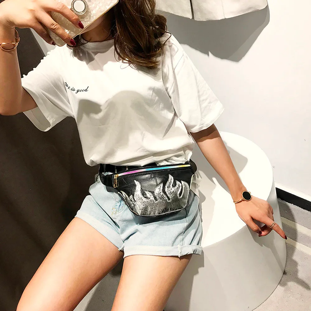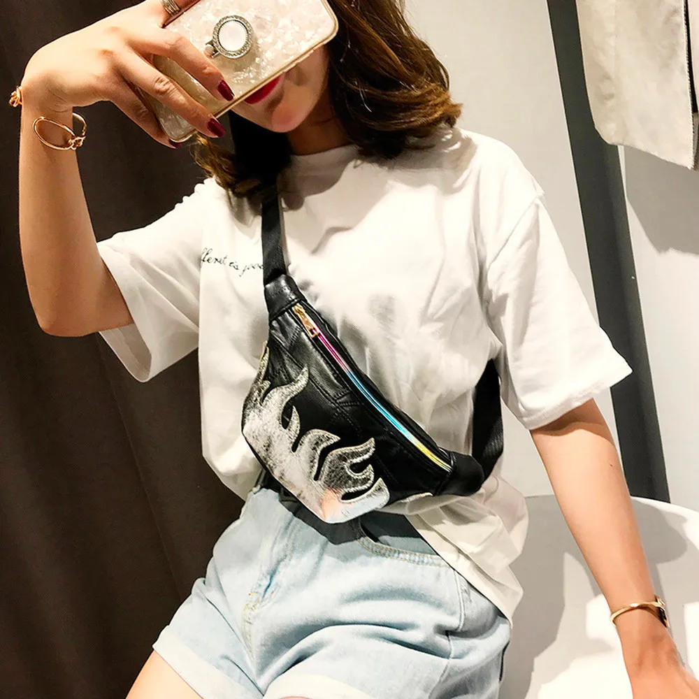 holographic Fanny Pack:Vintage PU Leather Waist Bag Women