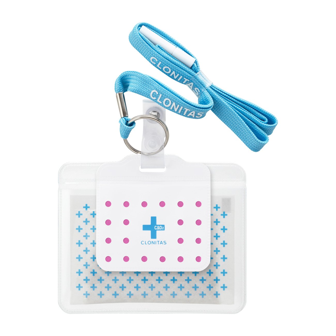 Virus removal / disinfection / deodorizer with chlorine dioxide blend, with card holder.