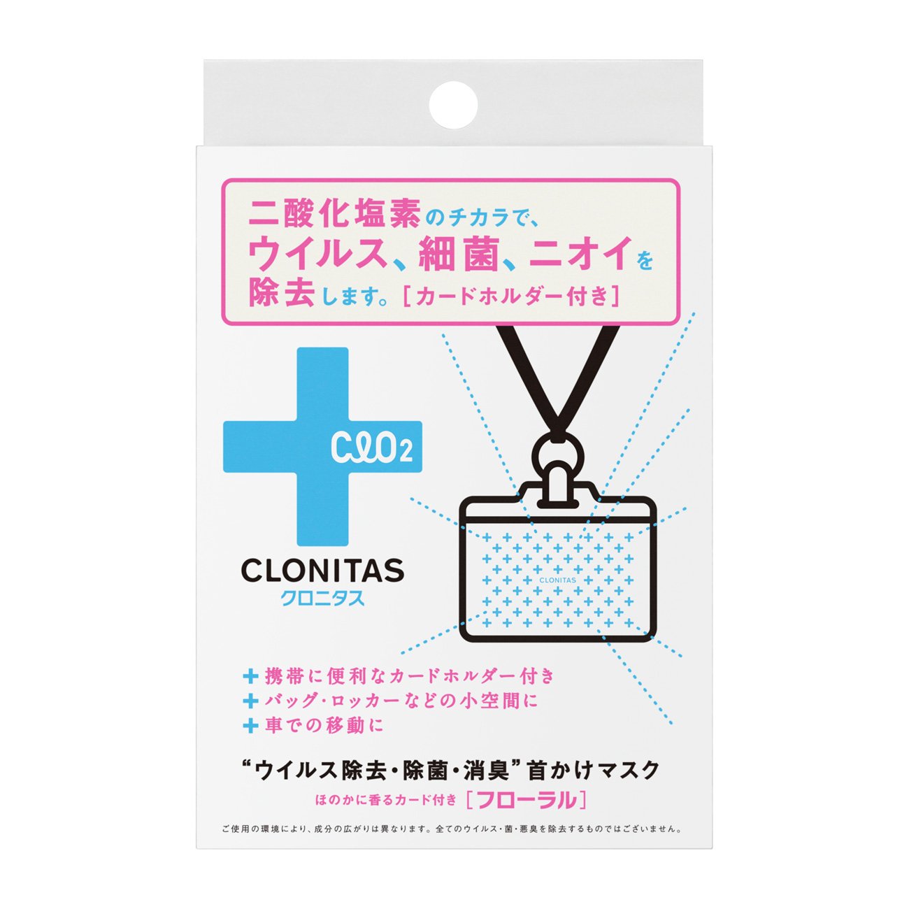 It is a hook type virus removal / disinfection / deodorant which removes odor, bacteria, virus from chlorine dioxide.