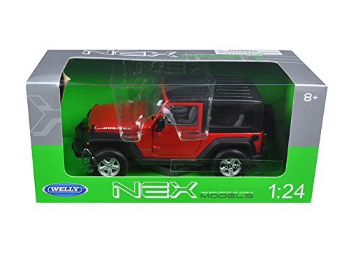 -. Title : Welly 2007 Jeep Wrangler Rubicon with Top 1/24 Scale Diecast Model Car Red