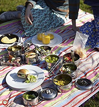 Large Family Size 4 Tier Indian-Tiffin, with bowls, spoons & trays