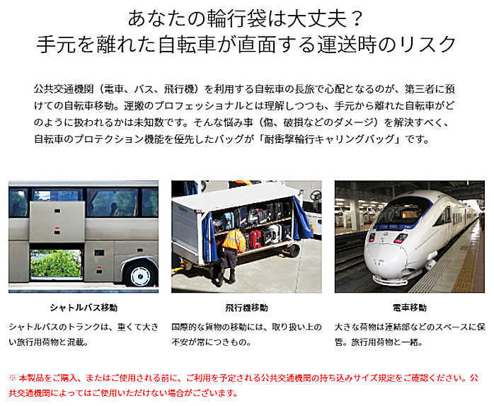 移動時(海外旅行や国内遠隔地)はもちろん、車内・室内保管中でも「ぶつけ」や「擦れ」が心配な自転車の運搬。