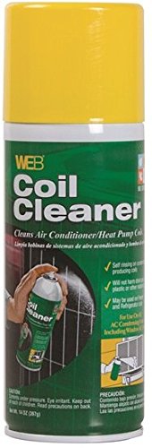 WEB Coil Cleaner The foaming action will help loosen the dirty buildup on your condenser coils. A dirty condenser can increase AC or heat pump usage substantially. Use WEB Coil Cleaner on outside coils monthly during the cooling season to help your system operate more efficiently. Easily cleans and removes soils and buildup. Biodegradable. No fume formula. 14 oz. aerosol can.