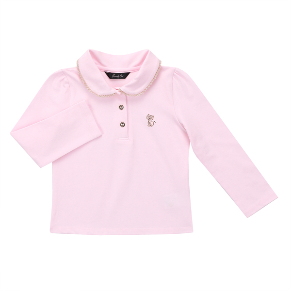깨끗한 연핑크 컬러의 카라 티셔츠 입니다. 골드 단추 장식과 오른쪽 가슴에 골드 프렌치캣 포인트로 블링블링한 느낌을 준 아이템입니다. 에리 끝에 레이스를 넣어주어 러블리함을 더해주었습니다. 원피스와 레이어드 하기도 좋고 기본 팬츠, 스커트, 치랭스와 코디하기 좋은 데일리 아이템입니다.