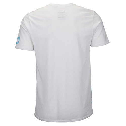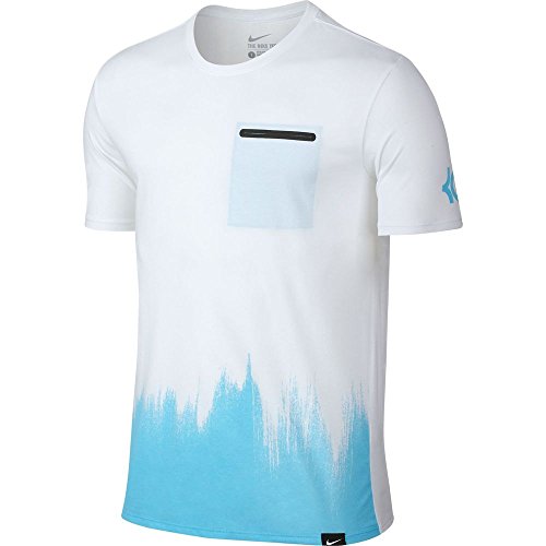 Binding : Apparel Product Description Shirt is athletic cut, short sleeved, and ribbed crew neck with interior taping for durability and comfort. Shirt is white in color with blue lagoon accents designed throughout. You live on the basketball court. Wear a shirt that lets everyone know where your spend your time. Dri-FIT material (58% cotton / 42% polyester), machine washable. 0