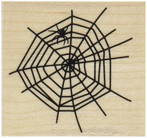 This spooky woodblock stamp features an image of a spider in a web. Each design is a handmade original.