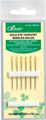 # 238 Gold eye tapestry needles #18-22. These needles will glide through fabric smoothly. The needle has gold eye plating with a unique elliptical design for easy threading. The hardness of steel was obtained through high temperature treatment and tempering making our needle hard to break or bend.
