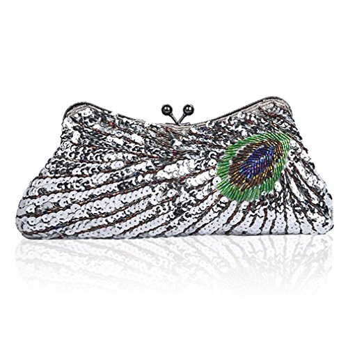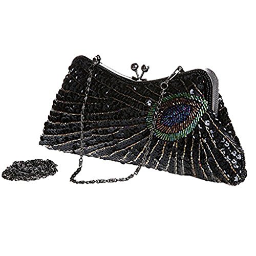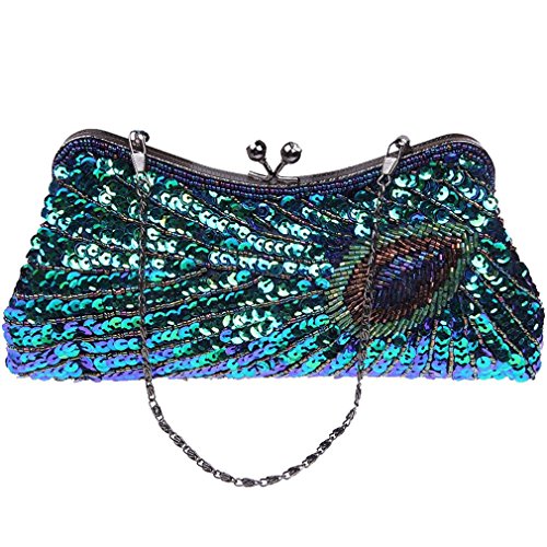 -. Feature : It's the perfect size for holding formal events -- makeup, cash and a standard-sized cell phone nicely to carry you through a festive night or party night. / This beaded peacock feather eye is a beautiful touch that adds nice texture and color variation. / It's a perfect bag for those occasions when nothing but blinding sequins will do.It also is a perfect gift for your family or friends. / You can use it as a clutch or as a shoulder bag, because it comes with 2 lengths of interchangeable chain. Except the classic, it only have one chain, because it got a handle. / Beautiful clutch bag is perfect for weekend, wedding, evening party, prom, cocktail various parties, night out or formal occasions and so on.
