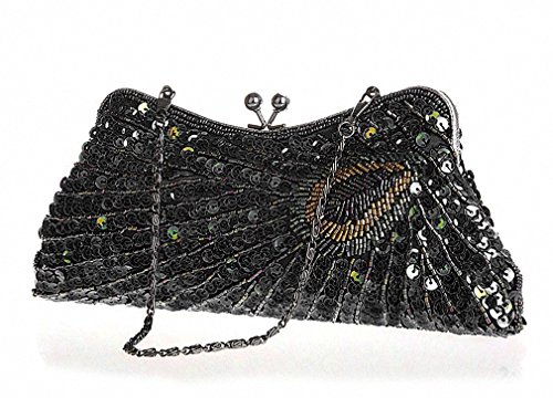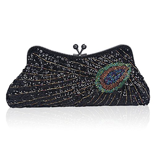 -. Title : Lifewish Woman Handbag Beaded Kiss Lock Clutch Purse Peacock Sequins Clutch Bag