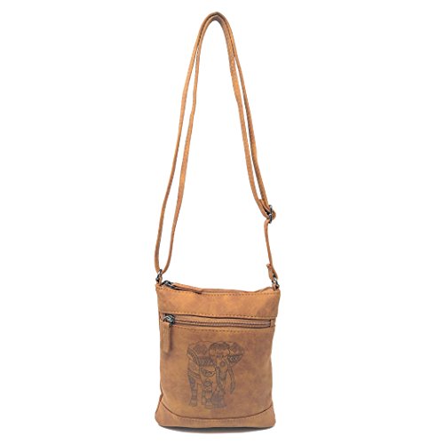 Small Pocket Book Style Cross Body Handbag with Hippy Elephant Etching on Front
