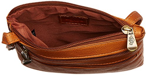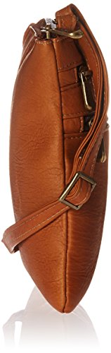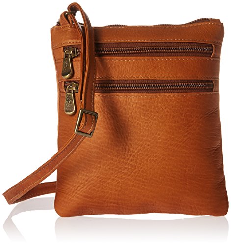 Royce Leather Colombian Leather Double Zip Crossbody Cross Body Bag, Tan, One Size