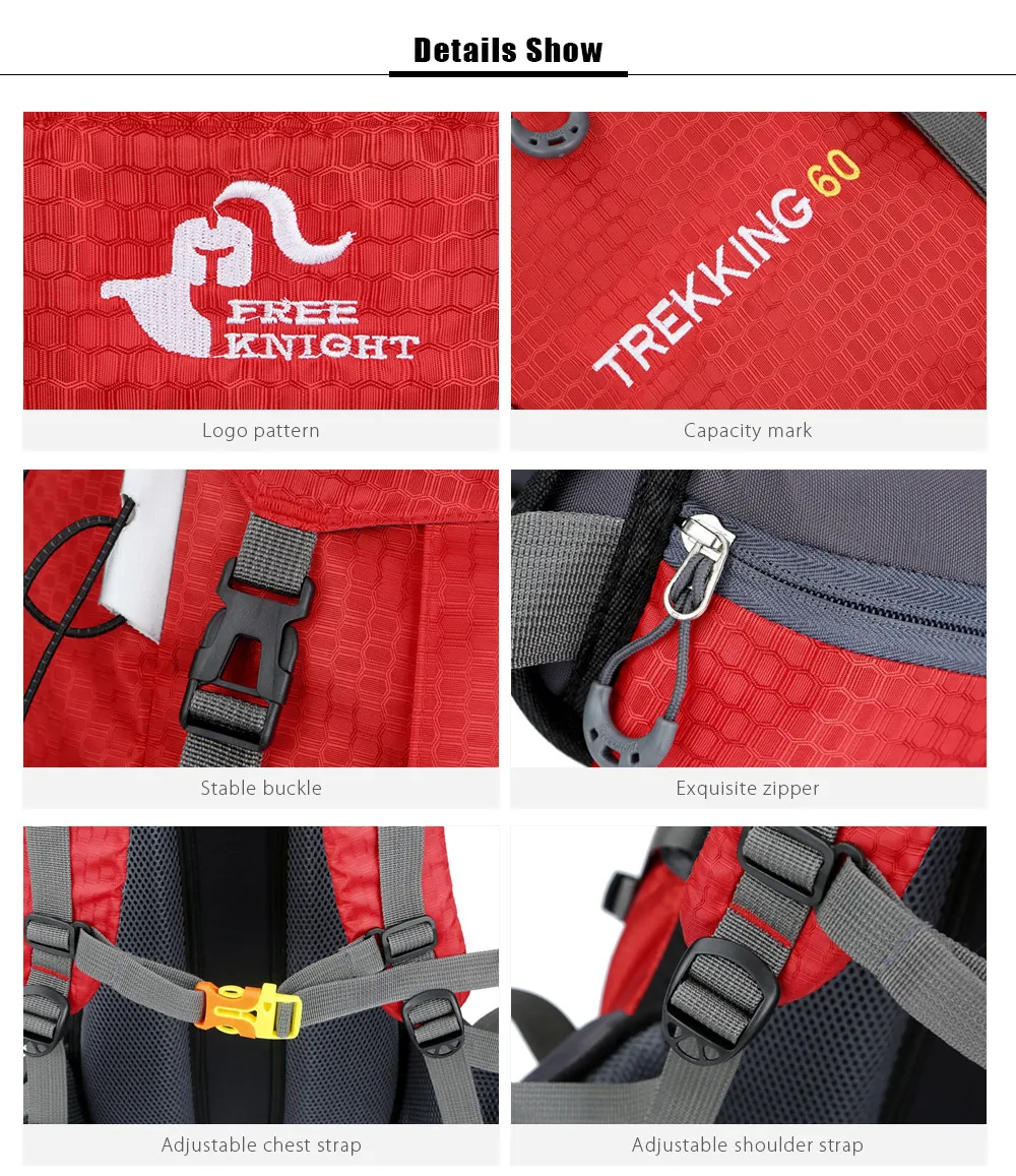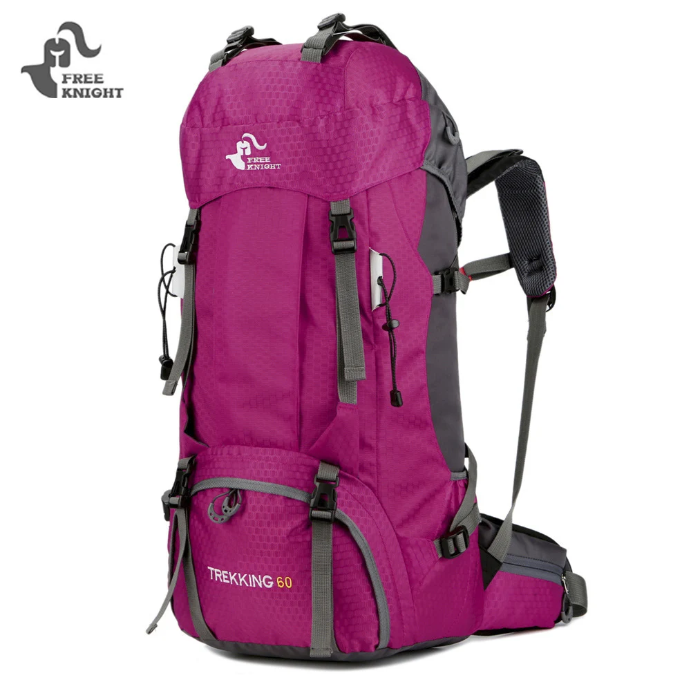 Free Knight 60L Climbing Bag Waterproof Climbing Hiking Backpack With Rain Cover Tear Resistant Nylon Fabric Outdoor Sports Bags