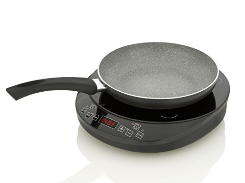 | The Fagor 2X Induction Set includes a sleek electric countertop induction burner and a 9.5" induction ready PFOA Free non-stick aluminum skillet. This portable induction set is an 8 temperature/power level unit that uses 1800 watts of power and is perfect as an extra cooking zone in kitchens, campers, dorm rooms or as a buffet warmer for entertaining! Induction cooking provides a fast, safe and effective cooking experience using 90% of energy produced and is up to 50% faster than gas and electric saving you both energy and money. Any induction ready piece of cookware can be used on this induction unit in addition to the skillet that comes with the set. Uses regular 110-120 V. Induction Ready Skillet: The Fagor 2X Induction Set comes with an induction ready aluminum skillet for immediate use. The induction ready base allows this skillet to be used on all induction cooking surfaces New Features Include: The cooktop comes equipped with 8 power levels. Each power level has a corresponding Fahrenheit and Celsius temperature. Increased temperature range up to 465°F with 1800 watts of power! Safest Way to Cook: The surface remains cool to the touch and there are no open flames, smoke, or gas emissions. It also has an automatic safety shut off feature and a child safety lock Most Efficient Way to Cook: The 2X utilizes 90% of the energy produced compared to 50% used by other cooking methods. The cooktop recognizes the base of the cookware and directly heats only the diameter of the pot, saving you energy and money. Easiest Cooktop to Clean: The smooth cooking surface is made of high-quality, heat resistant glass making spills easy to clean. Spills do not bake on to the stay-cool surface, making them easy to wipe away - 8 quick launch buttons relating to various cooking functions: Warm, Simmer, Boil, Rapid Boil, Sauté, Brown, Sear and Stir-Fry - Temperature buttons activate the cooktop and begins cooking at 180F default level - Temperature ranges from140°F –465°F and has 1800 watts of power. Go from melting chocolate without a double boiler to stir-frying within minutes - Digital Display shows cooking temperature which can be increase and decreased in 10-degree increments - Built-in timer of up to 180 minutes - Built-in Child Safety Lock for added convenience - Durable, easy to clean with heat resistant glass cooking surface - Light weight and compact; only 5.9 lbs. Measurements: 11.8 “(L) x 15” (W) x 2.3” (H) - Includes user’s manual with recipes - Perfect to use as an extra cooking zone in your kitchen, or in college dorm rooms, campers, studio apartments or wherever a 110 V outlet is available. Can also be used as a buffet warmer - ETL approved |