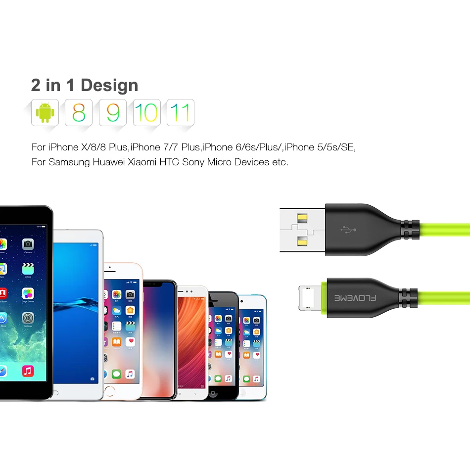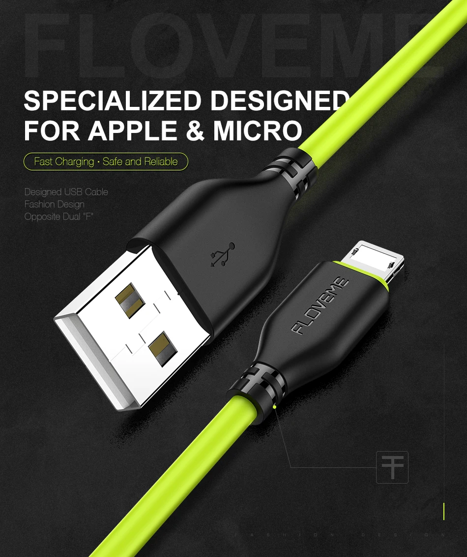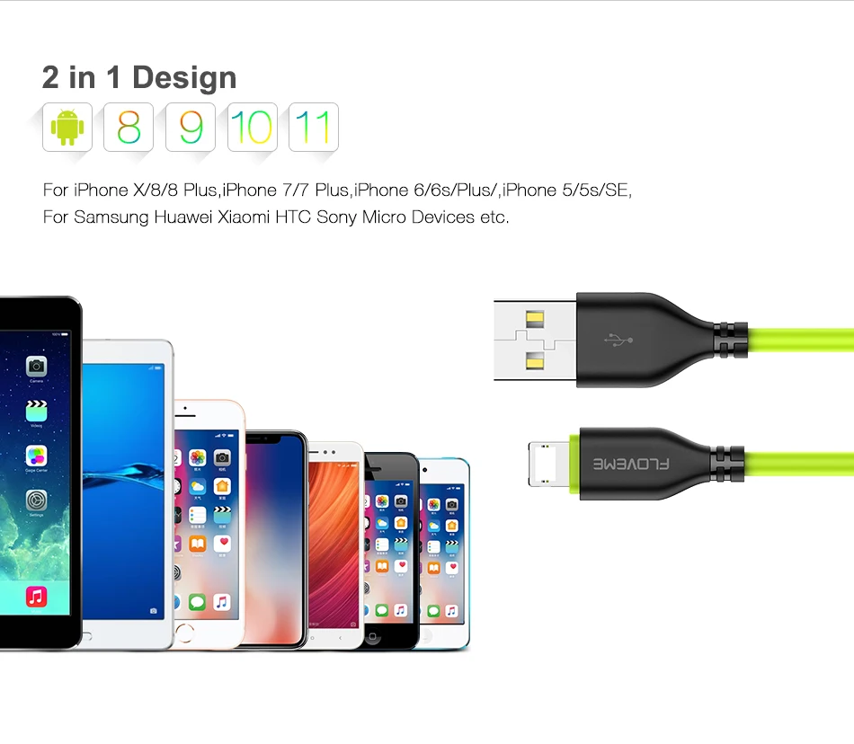 Feature 1:FLOVEME Original Design 2 in 1 USB Cable For Apple iPhone + Micro USB
