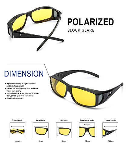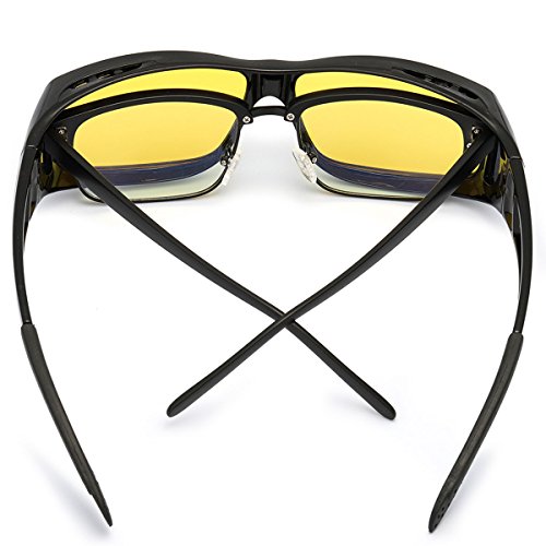 - ✦FIT OVER NIGHT VISION GLASSES –If you are myopia and often driving at night,this glasses will be your best choice. Because it is not only a night vision glasses,but also allows you to wear this glasses with prescription glasses at the same time. Not affect you drive because you can wear it one hand,very convenient,after wearing vision glasses the light is downy,clear and no discomfort. Although weight has increased,just wear a few times more you will adapt it.