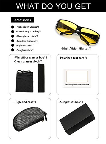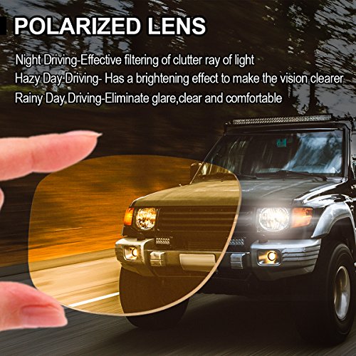 - ✦YELLOW NIGHT POLARIZED LENSES - Excellent ergonomic design & Lense for Night Driving Vision, It can improve color clarity and optical definition and enhance night vision when driving at Night , Cloudy Days, rainy days or many situations.
