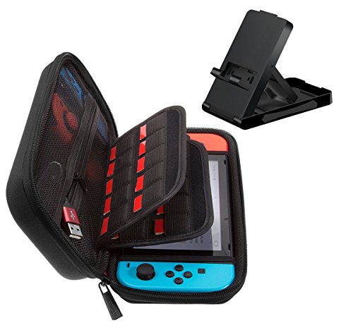 -. Title : EVIDA 任天堂Switch収納袋とブラケット2 in 1、ポータブルハードケース、20ゲーム、調節可能な折り畳み式ブラケット(黒)