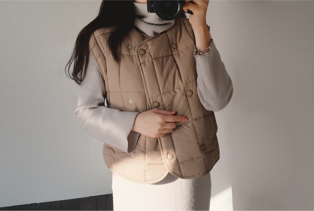 포근한 웰론 충전재로 가볍고 따뜻한 투 웨이 베스트에요:)