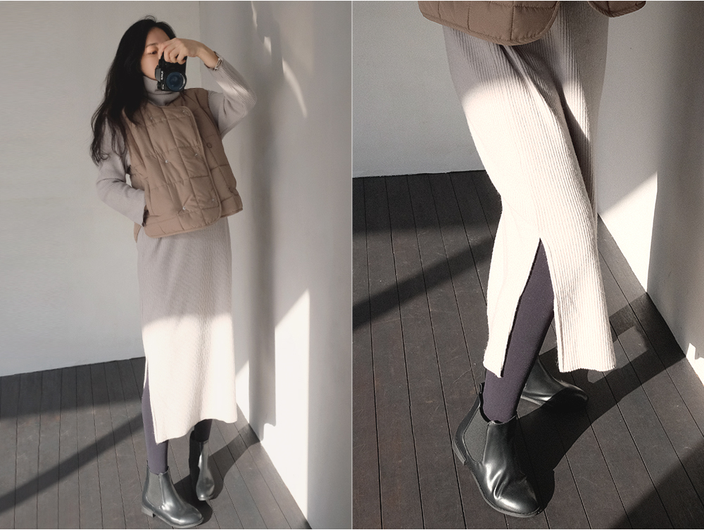 살짝 미니멀한 길이감이지만 언발란스한 앞,뒤기장과 사이드 트임으로