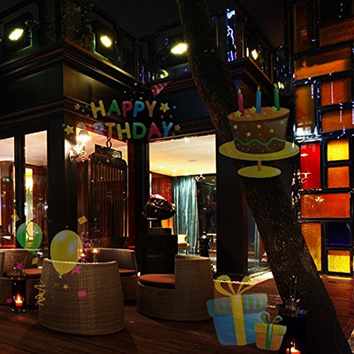 12 Festive Desigins: 12PCS Slides, heart shape, snowflake, clover, high heel, pigeon, skeleton, maple leaf, birthday cake, Santa, christmas tree, butterfly, star.Ideal for interior and exterior walls,landscapes,dance floors and more Celebration Series Projection Light Designs for every occasion!