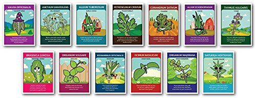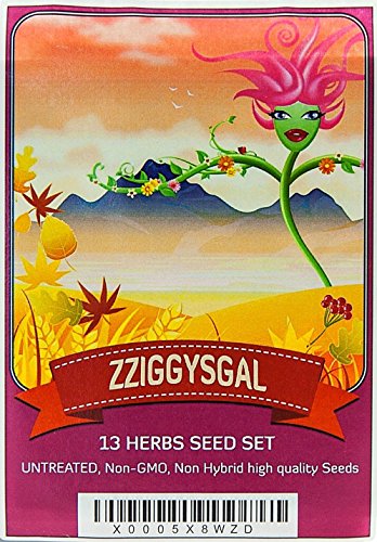 Zziggysgal Seeds – Culinary Herb Set of 13 Varieties – Includes Rosemary, Parsley, Thyme, Cilantro, Sweet Basil, Dill Bouquet, Oregano, Sweet Marjoram, Chives, Savory, Garlic Chives, Mustard, and Sage